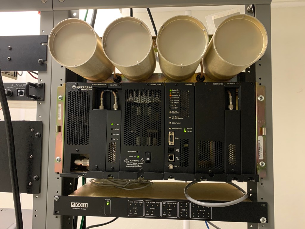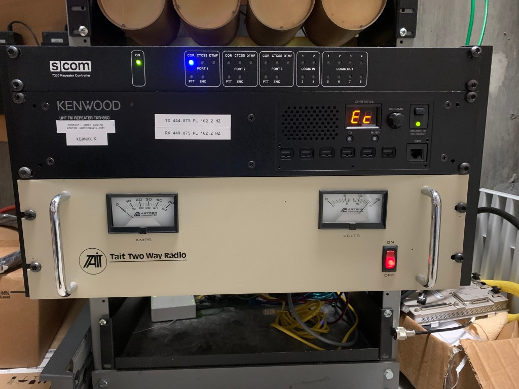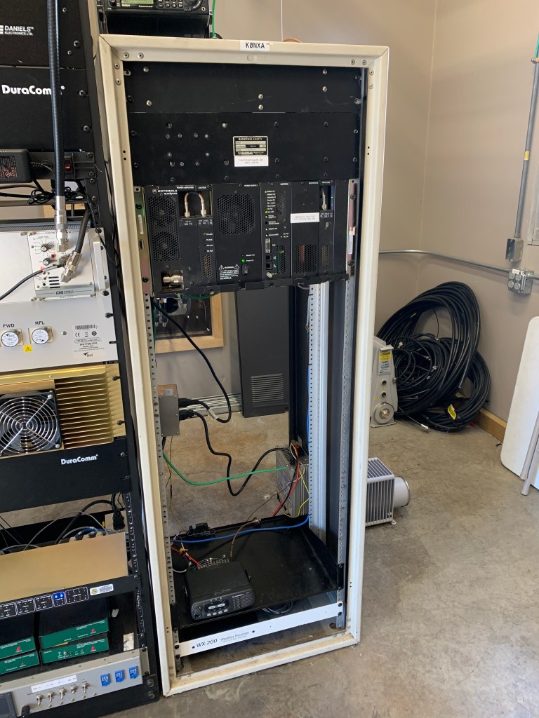 The repeater, and duplexer, was donated to KB0NHX by Lee Ward, K0LW, and was previously stashed in his “radio barn”. The repeater had not been powered up or operational in many years.
