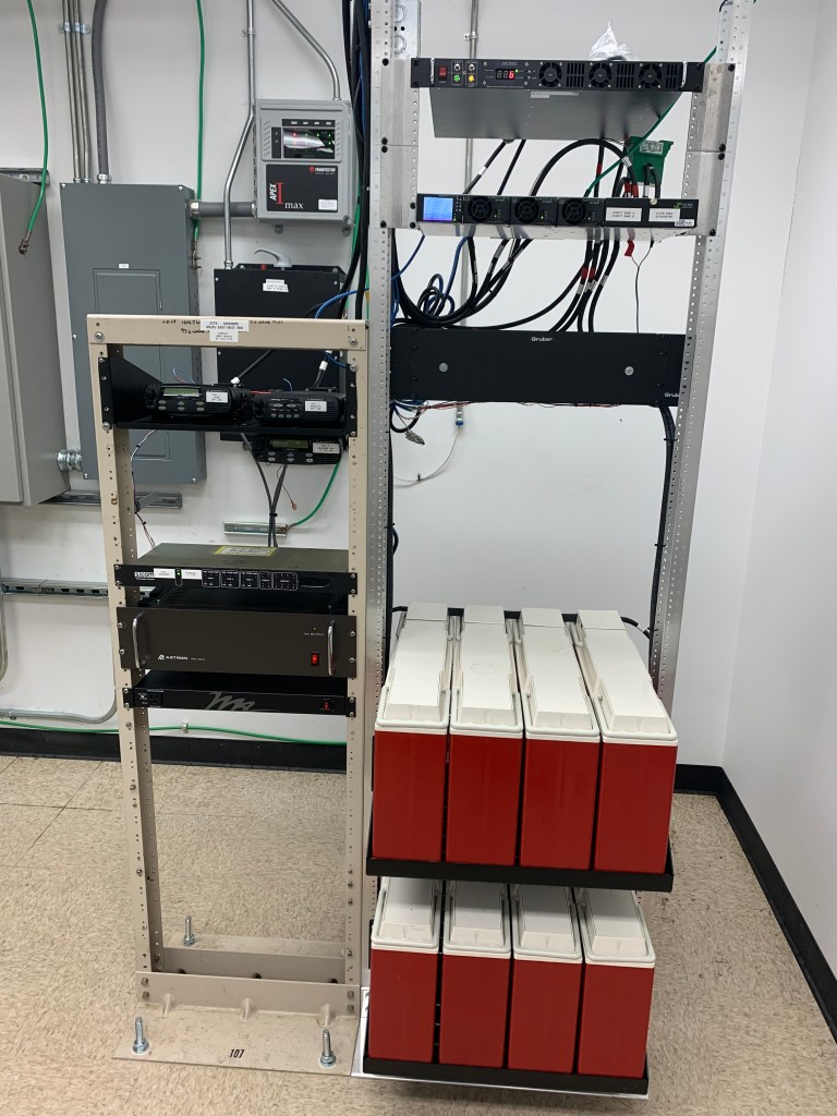 Backup power is provided by the 400a, 48vdc battery bank with propane standby generator to ensure the East and West linked systems can remain connected during power outages. The building and tower are hardened to withstand direct tornado strikes and the building climate controlled to facilitate equipment longevity.
