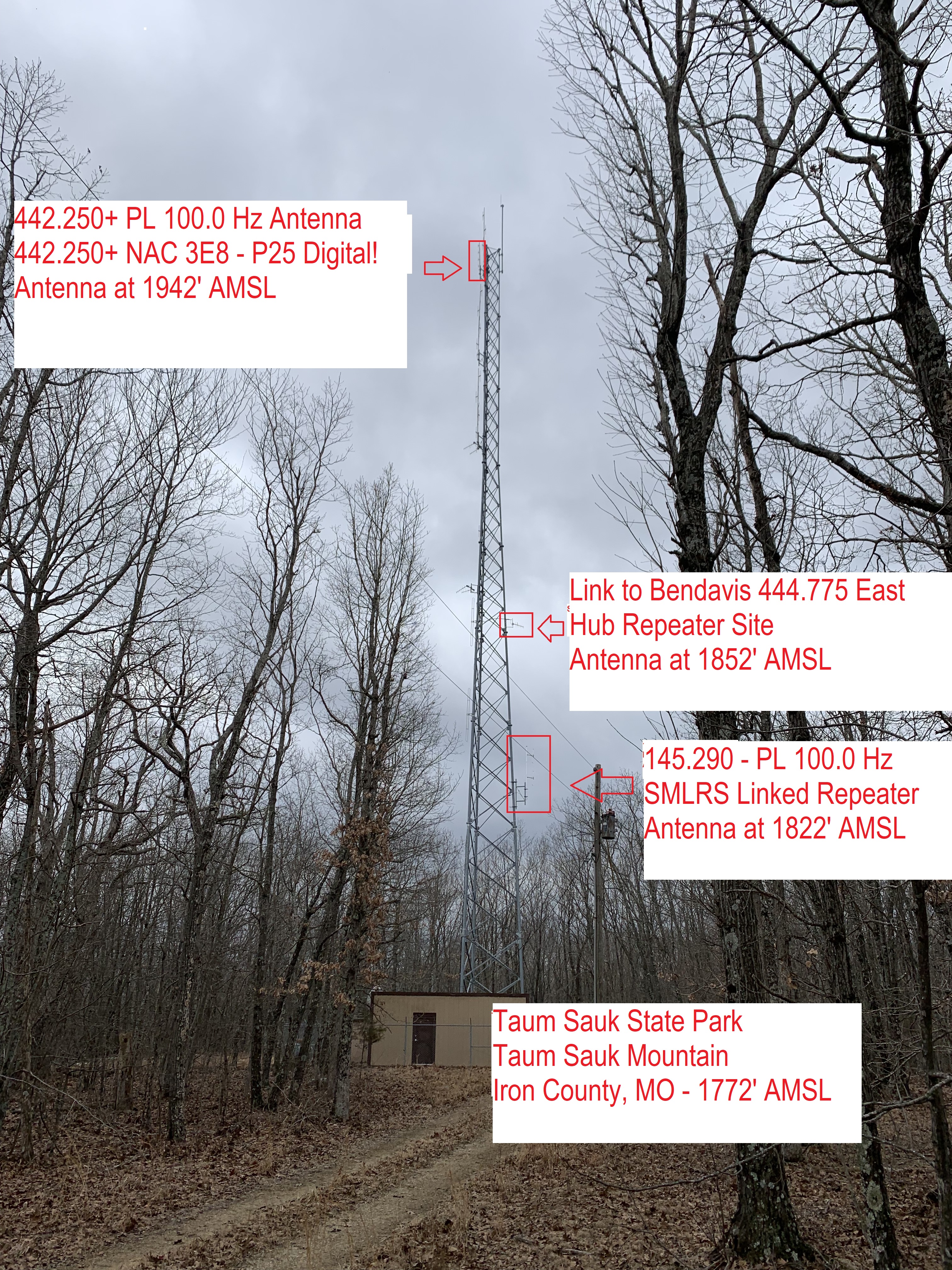 The Taum Sauk 145.290 Repeater is located on a tower located at the highest point in Missouri! The repeater ground work was completed on November 9, 2020.